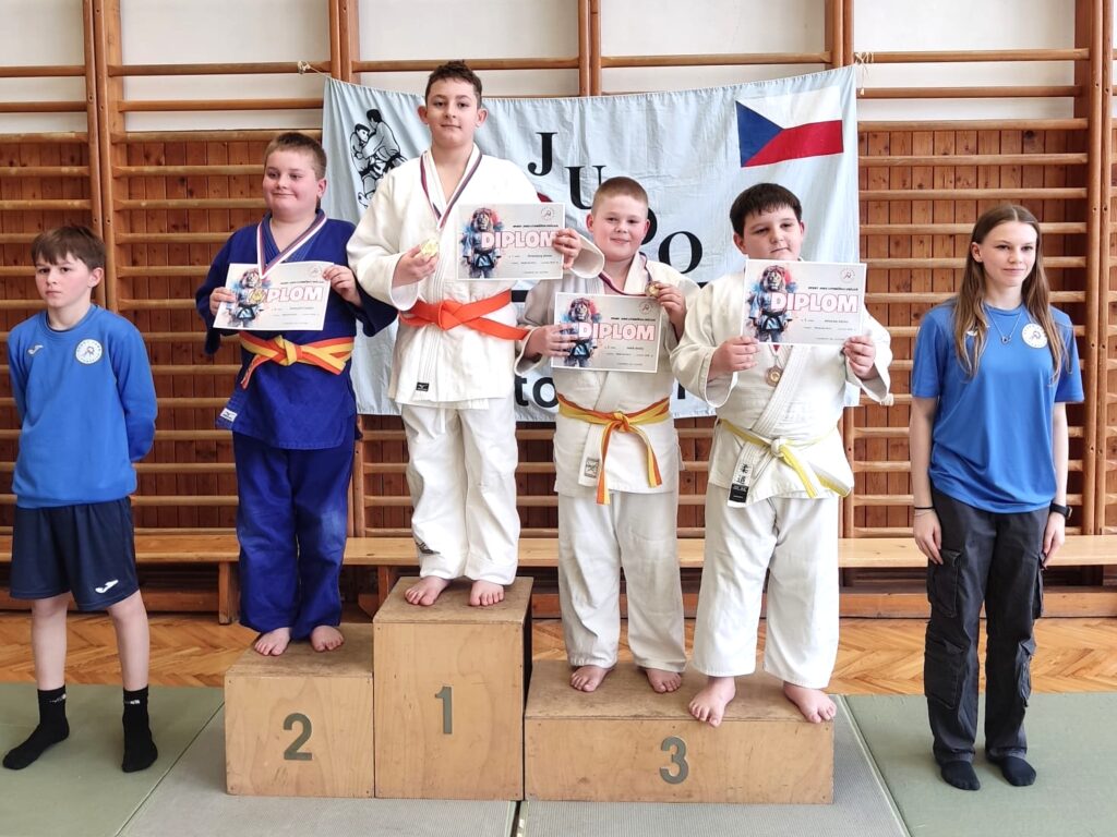 V sobotu 11. dubna se naši nejmladší judisté skvěle představili na turnaji v Teplicích. Dominik Kottek vybojoval zlatou medaili, Petr Pořický si odvezl stříbro. Pro Nikolku Muskovou šlo o její soutěžní premiéru, kterou zvládla výborně – hned při svém prvním startu získala stříbrnou medaili.